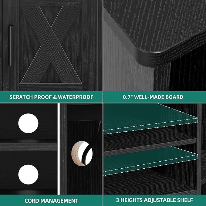 YITAHOME Corner TV Stand, Entertainment Center, Farmhouse TV Stand 55 inch TV w/Power Outlet, TV Stand for Living Room w/Adjustable Storage Shelf, Television Stands for Living Room, Black