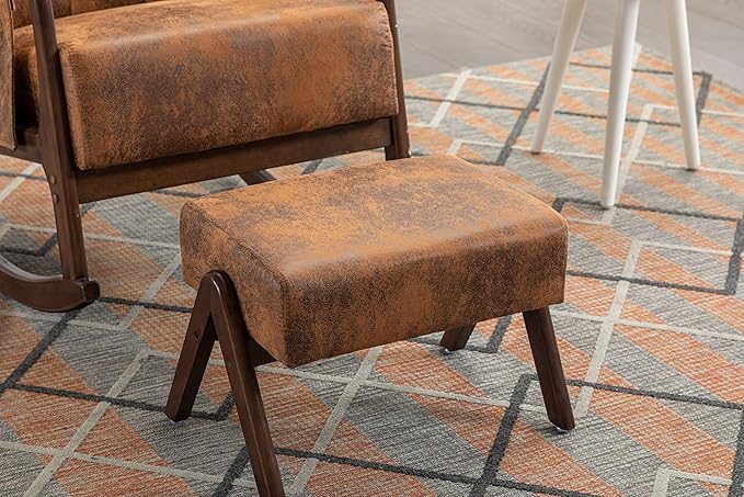 Armchair with Ottoman, Mid-Century Upholstered Accent Nursery, Glider Rocker Thick Cushion, Comfy Indoor Leisure Lounge Living Room, Bedroom, Office, Rocking Chair, Coffee