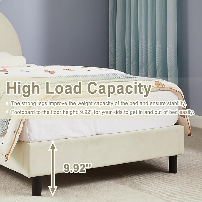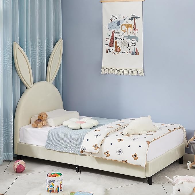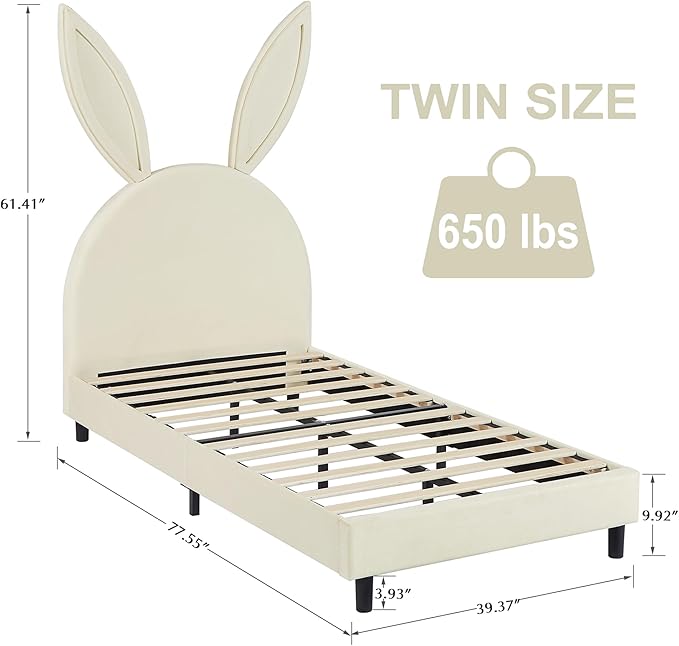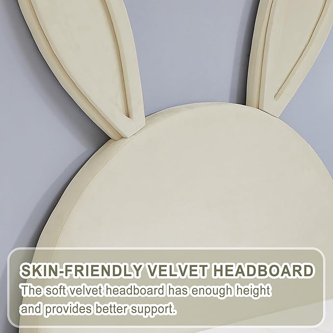 About This Velvet [LOVELY RABBIT AND LOW HEIGHT DESIGN]--This adorable child bed frame features lovely velvet upholstery with padded rabbit...