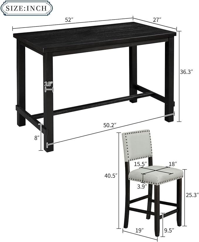 5 Piece Counter Height Dining Set for 4 Person, Include Classic Elegant Solid Wood Table and Four Padded Backrest Chairs, Farmhouse Home Furniture for Kitchen, Living Room, Espresso+Light Gray