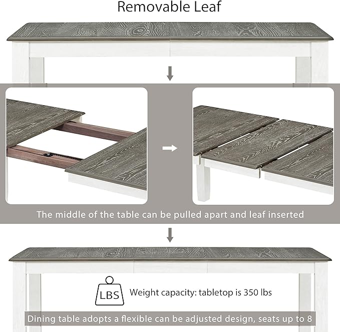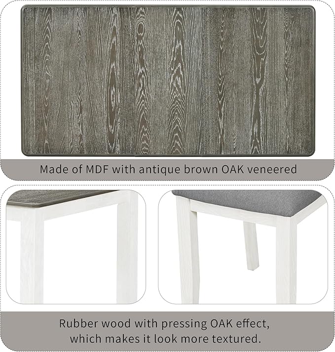 Retro Style 7-Piece Dining Set with Solid Wood Extendable Table and 6 Upholstered Chairs, for Kitchen, Living Room, Home Bar, Easy to Assemble, Gray+ Brown+White
