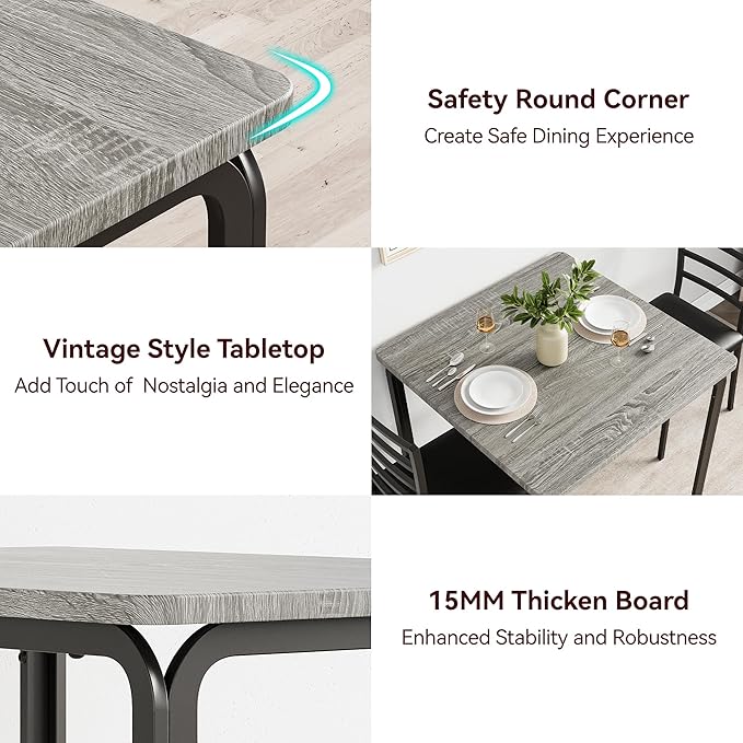 IDEALHOUSE Dining Table for 2, Small Table and Chairs Set of 2, Dinette Set for 2, Square Dinner Table Set, 3 Piece Kitchen & Dining Room Sets for Small Space (Grey, Dining Table with 2Chairs)