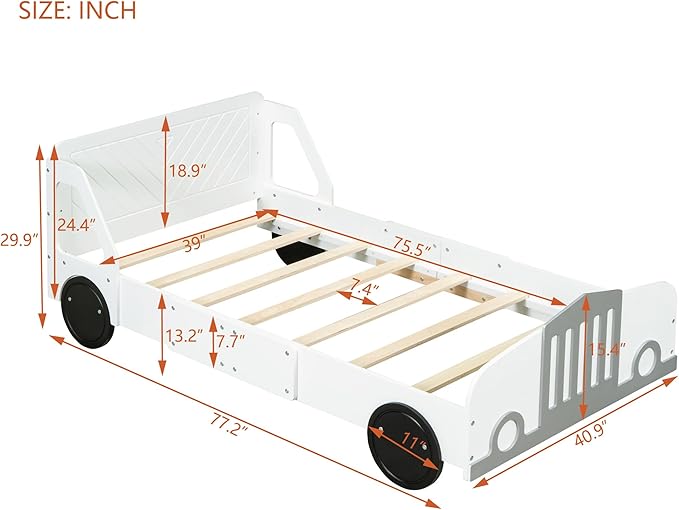 About This 【Unique design】 This Kids' bed with an appealing car design and solid construction will be a real eye-catcher...