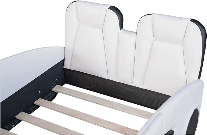 Twin Size Race Car Bed, PU Car-Shaped Bedframe with Wheels and Guardrails for Kids,Boys,Wood Slat Support, No Box Spring Needed,White