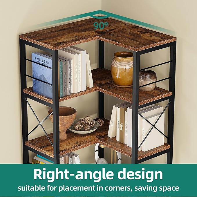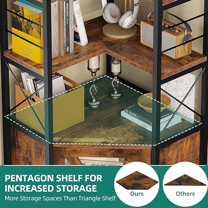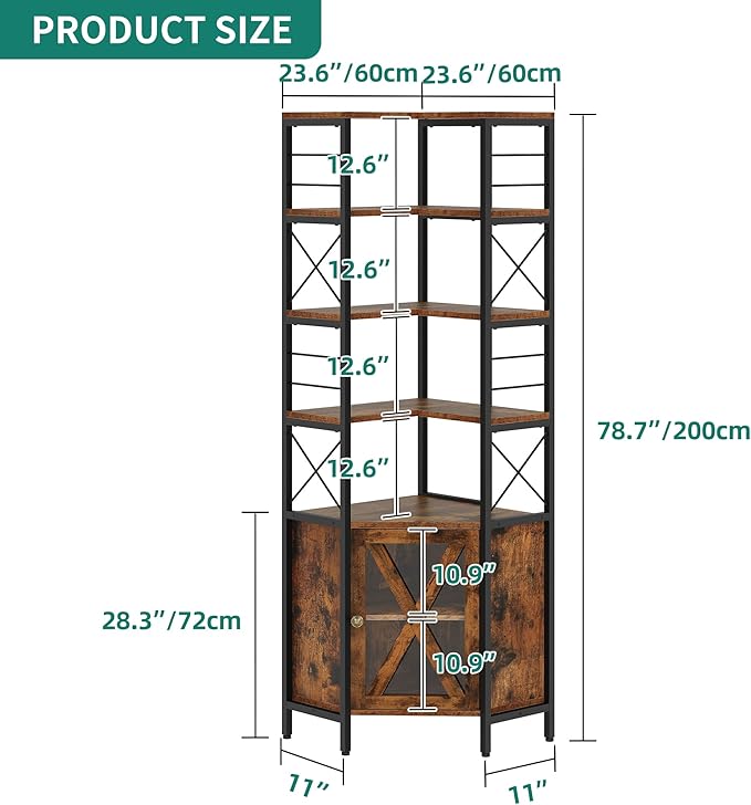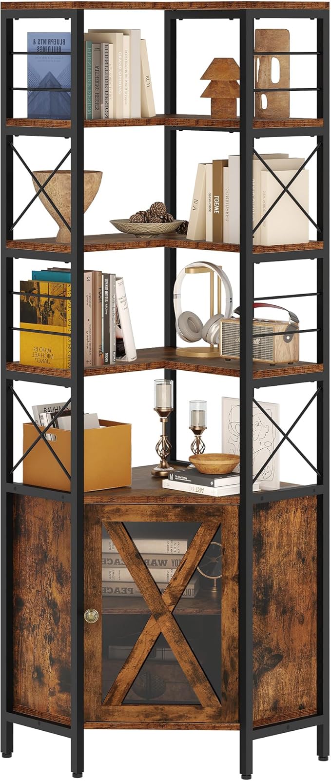 YITAHOME Corner Bookshelf with Storage, 7-Tier Corner Shelf with Doors, Large Corner Bookcase Display Rack for Living Room Bedroom Home Office, Rustic Brown