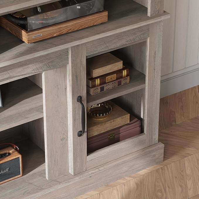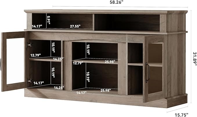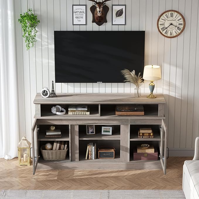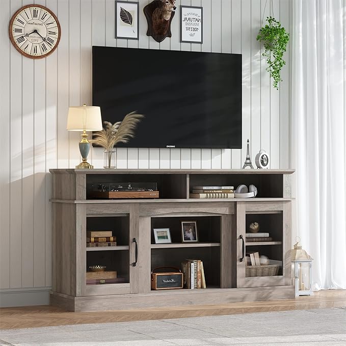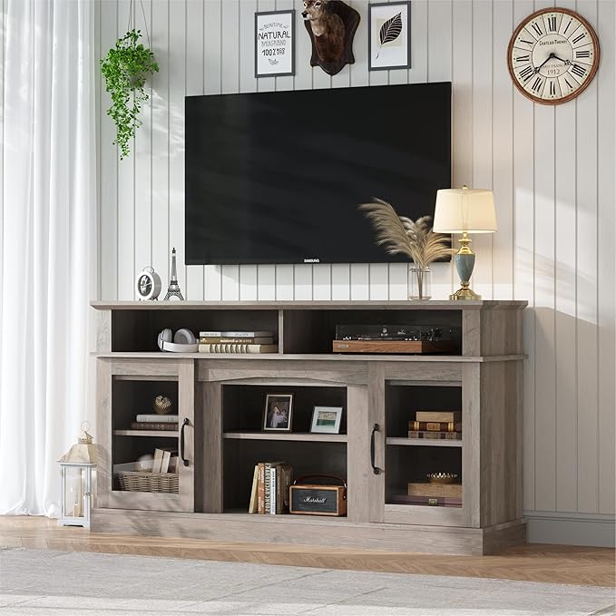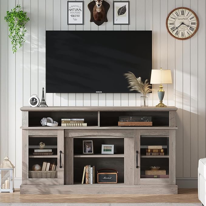 58 Inch TV Stand, Television Stands with 2 Tempered Glass Doors, Storage Cabinet and Shelves, Entertainment Center for Living Room, Barnwood