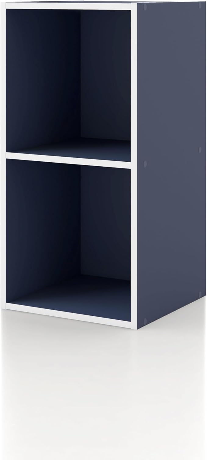 Apexa 2 Cube Storage Organizer Shelves, Stackable Wood Bookcase Fits Cubby Bins for Organization, Dorm Teen Room Decor & Home Office, Steel Blue