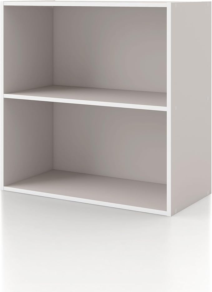 Apexa 2-Tier Cube Storage Organizer Shelves, Stackable Wood Bookcase Fits Cubby Bins for Organization, Dorm Teen Room Decor & Home Office, Greige