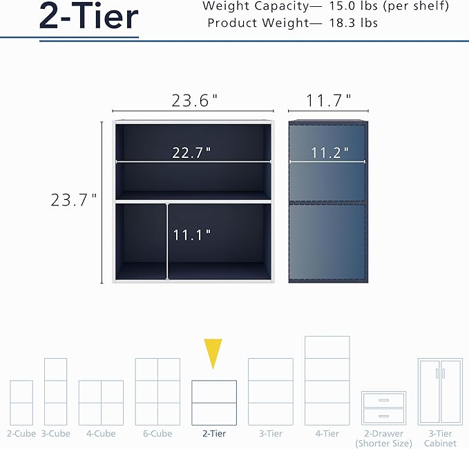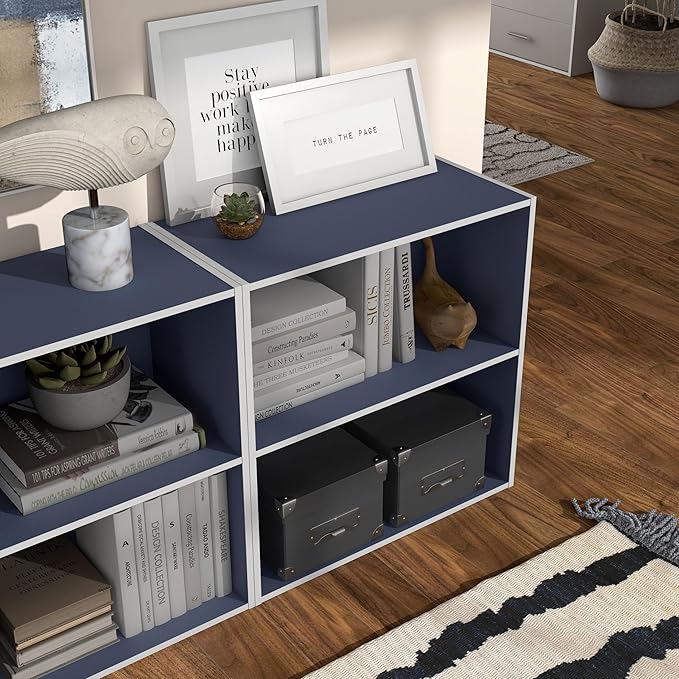 Apexa 2-Tier Cube Storage Organizer Shelves, Stackable Wood Bookcase Fits Cubby Bins for Organization, Dorm Teen Room Decor & Home Office, Steel Blue