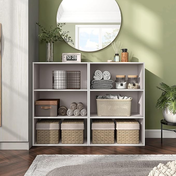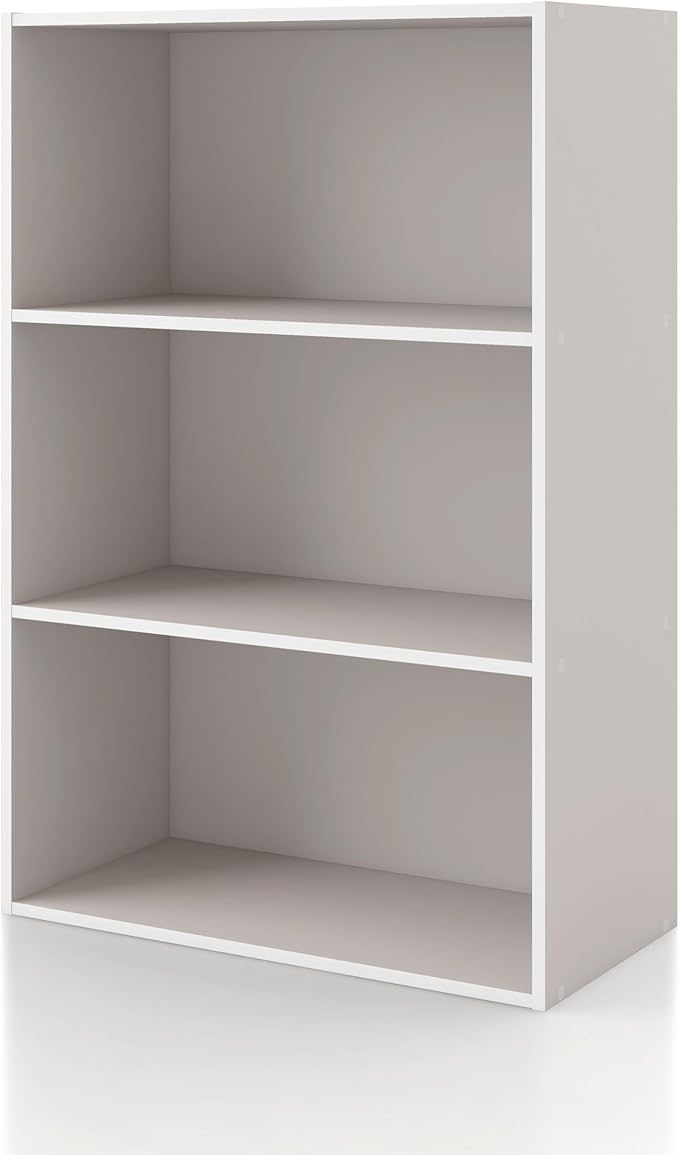 Apexa 3-Tier Cube Storage Organizer Shelves, Stackable Wood Bookcase Fits Cubby Bins for Organization, Dorm Teen Room Decor & Home Office, Greige