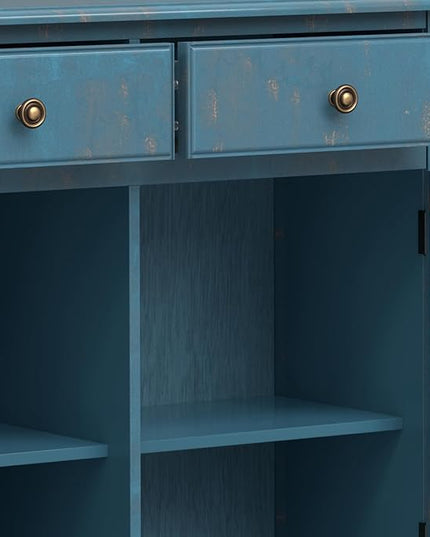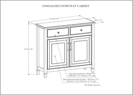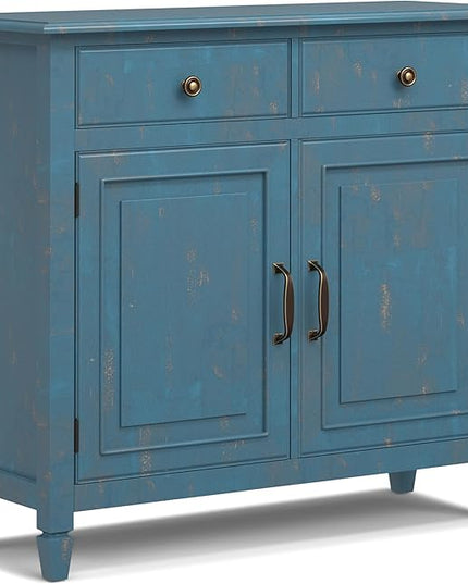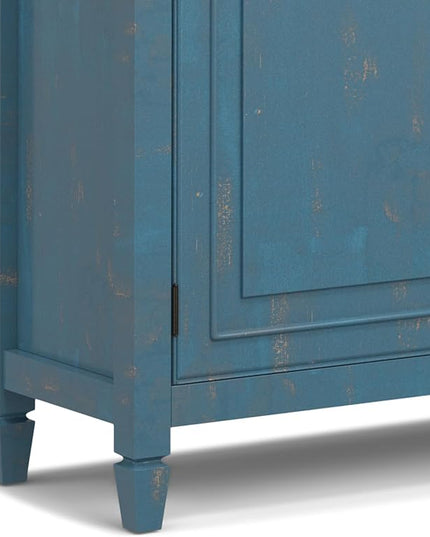 SIMPLIHOME Connaught SOLID WOOD Wide Traditional Storage Cabinet for The Living, Entryway and Family Room, 40 inch, Distressed Coastal Blue