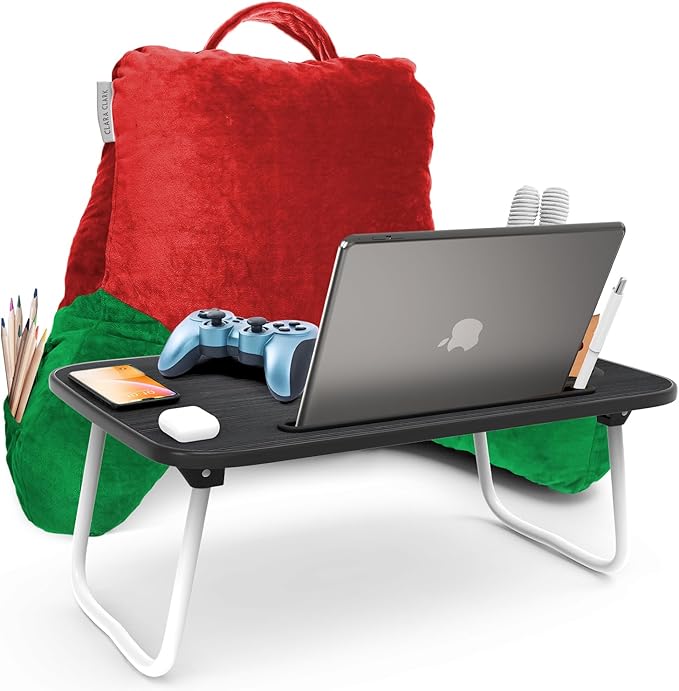 Clara Clark Reading Pillow with Portable Lap Desk Set for Kids, Back Pillow for Sitting Up in Bed, Memory Foam Back Support Pillow, Bed Rest Pillow with Foldable Laptop Desk, Small - Holiday Color
