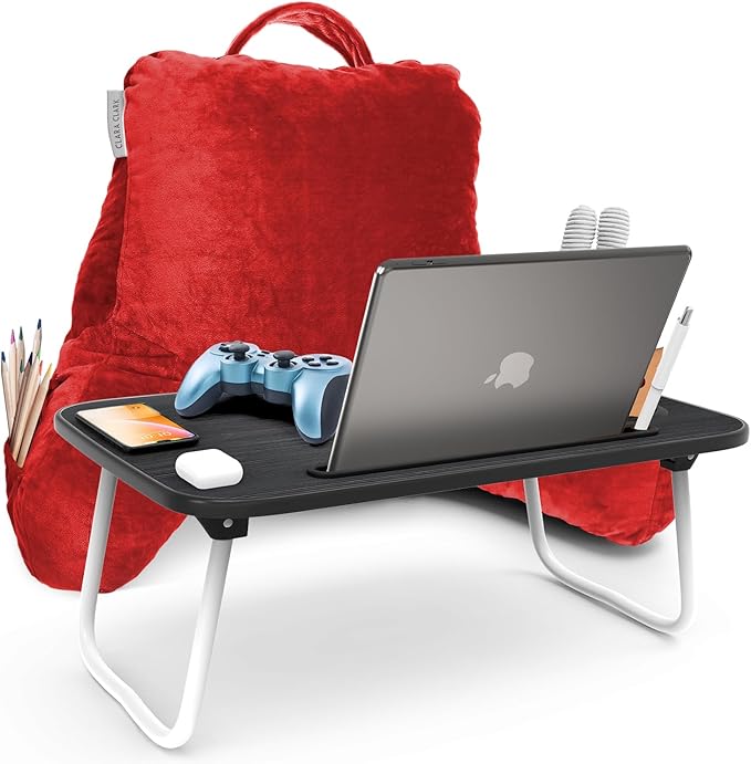 Clara Clark Reading Pillow with Portable Lap Desk Set for Kids, Back Pillow for Sitting Up in Bed, Memory Foam Back Support Pillow, Bed Rest Pillow with Foldable Laptop Desk, Small - Red