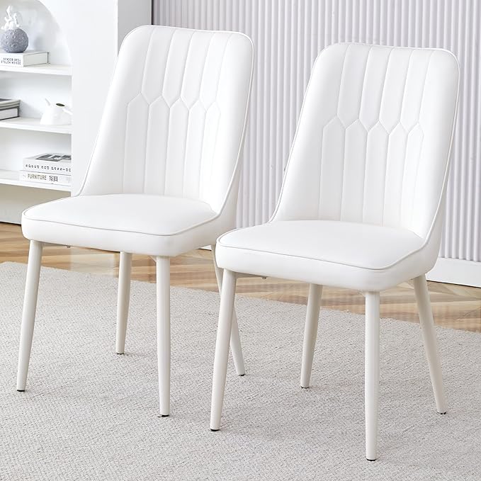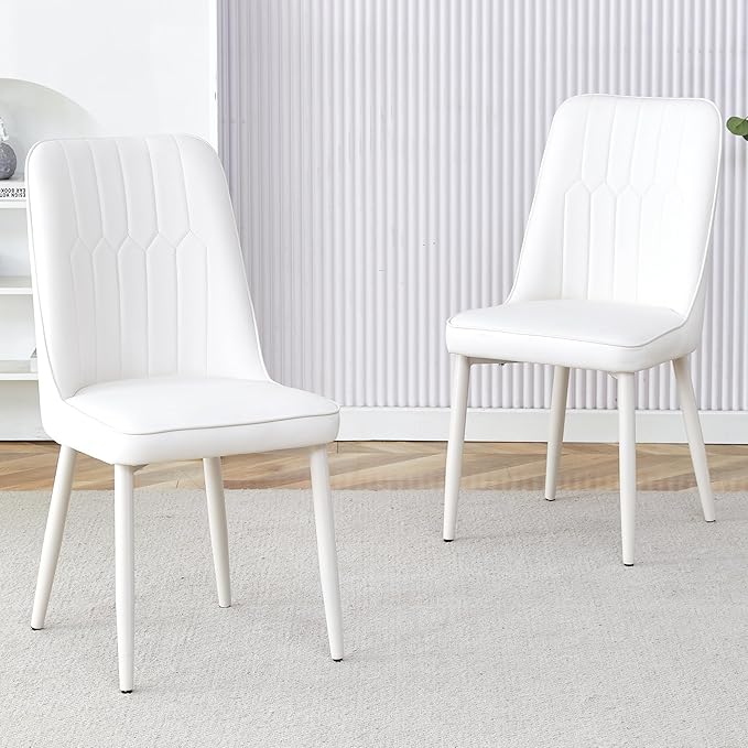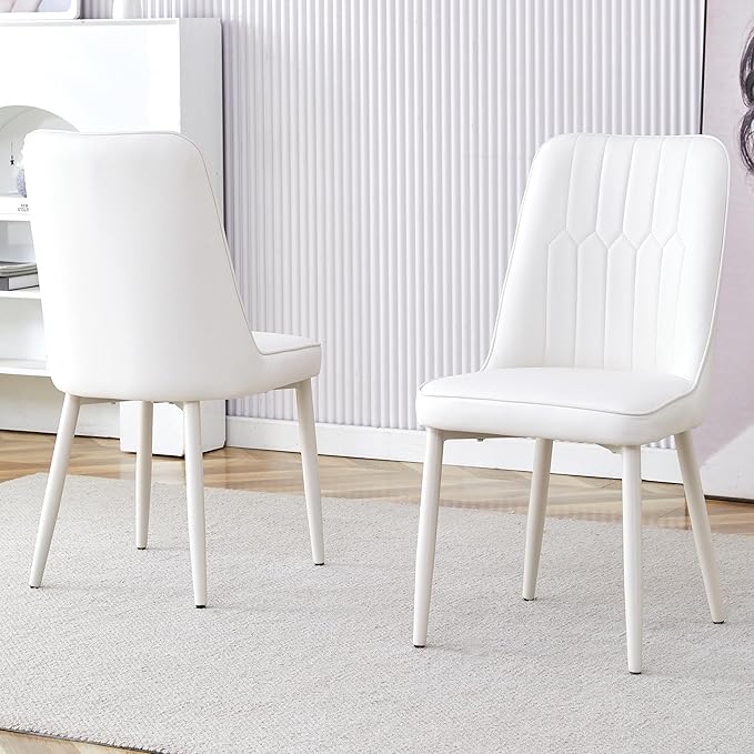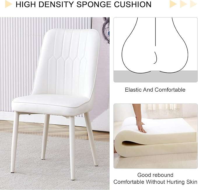 Modern Set of 2, Faux Leather Dining PU Upholstered Cream Kitchen Chair Metal Legs for Home Living Room, Restaurant, 2 Piece