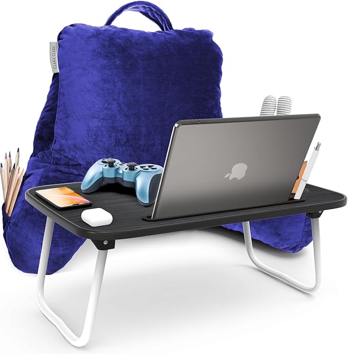 Clara Clark Reading Pillow with Portable Lap Desk Set for Kids, Back Pillow for Sitting Up in Bed, Memory Foam Back Support Pillow, Bed Rest Pillow with Foldable Laptop Desk, Small - Royal Blue