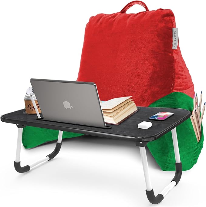 Clara Clark Reading Pillow with Portable Lap Desk for laptop Set, Back Pillow for Sitting Up in Bed, Memory Foam Back Support Pillow Bed Rest Pillow with Foldable Laptop Desk, Standard - Holiday Color