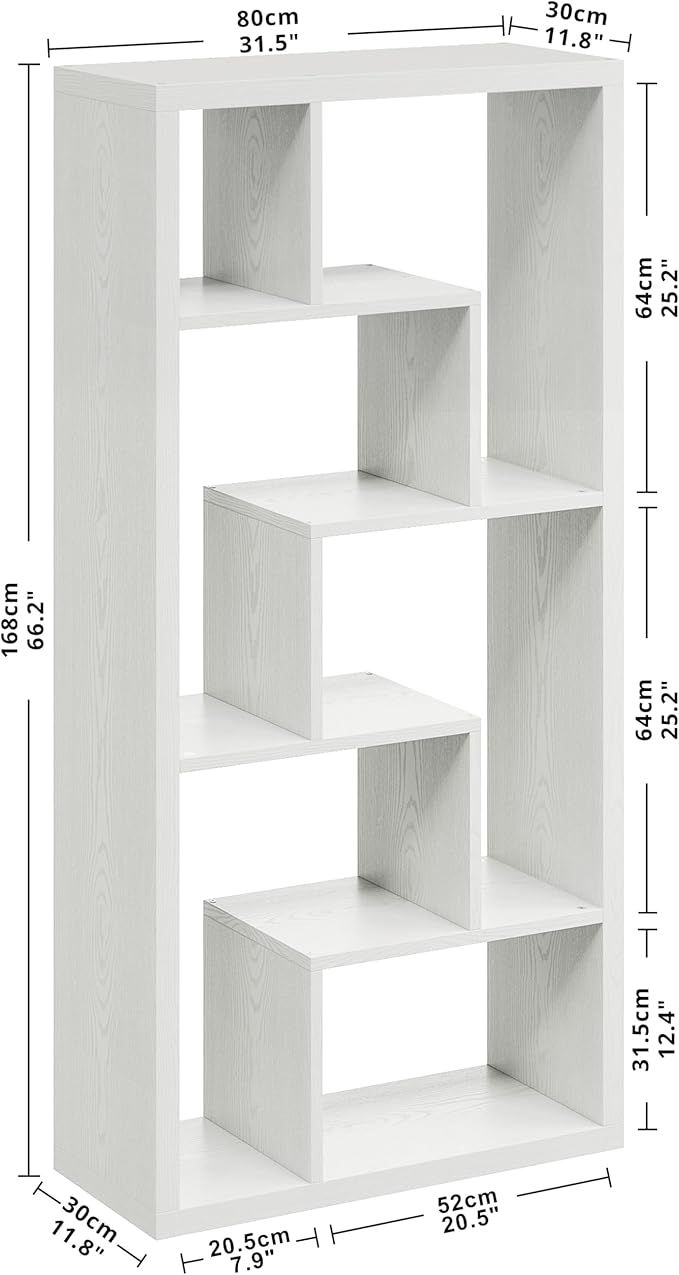 IRONCK Geometric Bookcase 6-Shelf Industrial Bookshelf White Etagere Bookcase Tall Storage Display Bookshelf with Thicken Shelf for Living Room Home Office