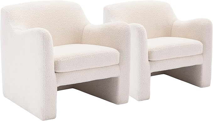 COLAMY Sherpa Accent Chairs Set of 2, Living Room Chairs, Soft Padded Armchair with Back, Comfy Accent Living Room Chairs for Bedroom Waiting Room, Cream