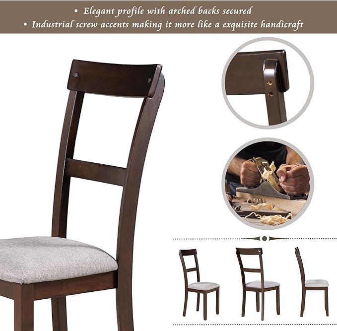 5 Piece Industrial Dinette Sets Wooden Kitchen Dining Table and 4 Matching Upholstered Chairs, for Diningroom Living Room, Easy to Assemble, Espresso 1