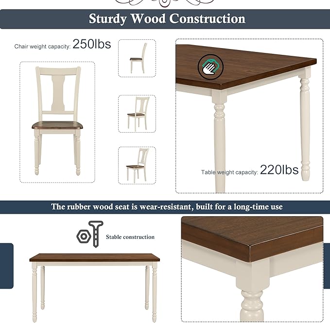 6-Piece Classic Dinette Sets Rectangular Wooden Kitchen Dining Table, 4 Chairs & Bench, for Diningroom Living Room, Easy to Assemble, Brown+Cottage White
