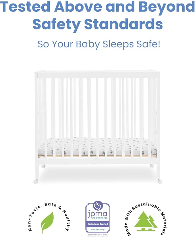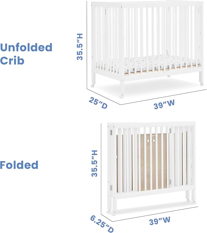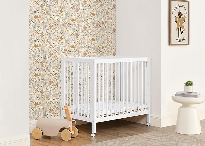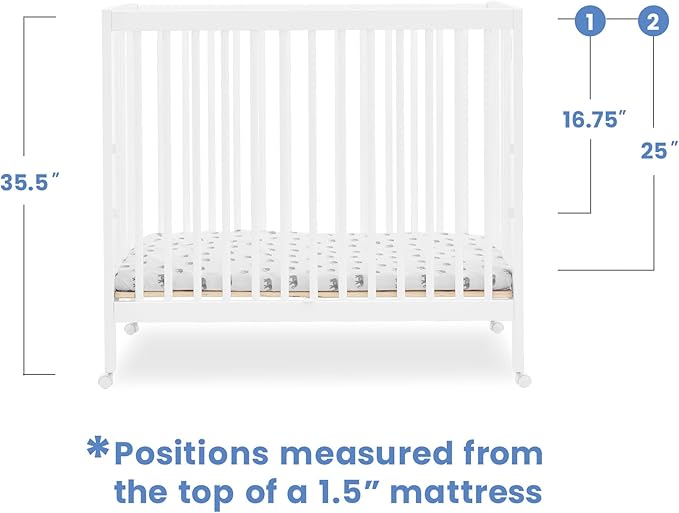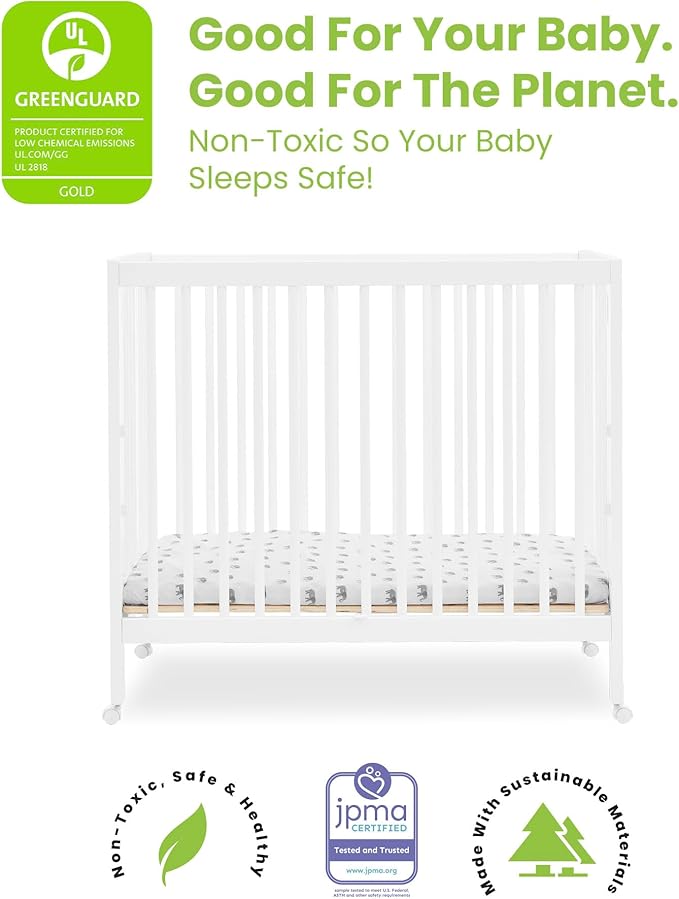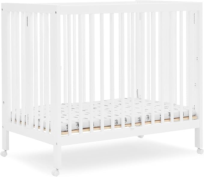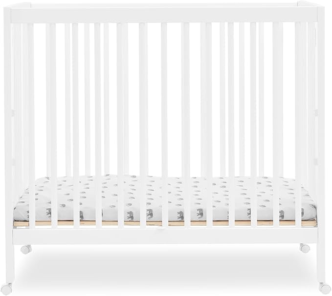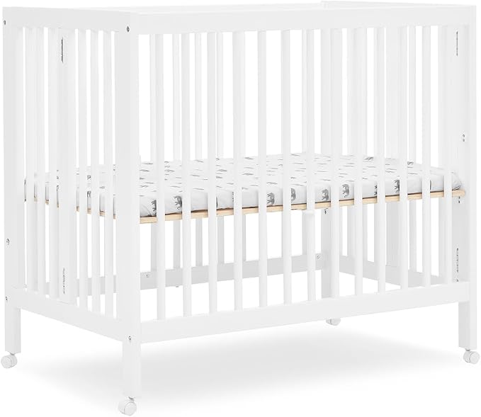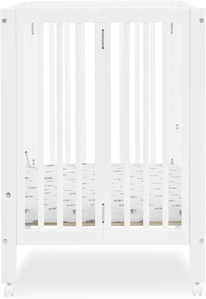Delta Children Mia Portable Folding Mini Crib with 1.5-Inch Mattress - Greenguard Gold Certified, Bianca White