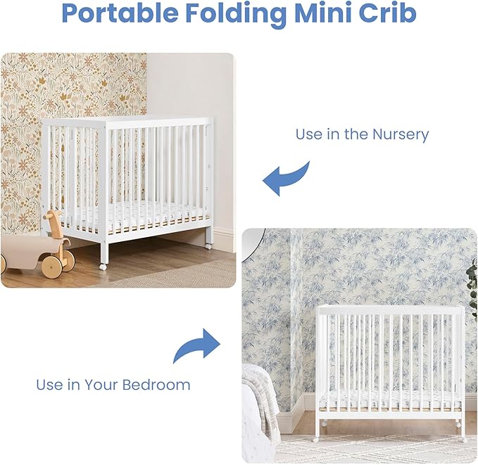 About This PORTABLE CRIB: Small footprint is great for small spaces, shared bedrooms or overnight trips | Crib easily folds...