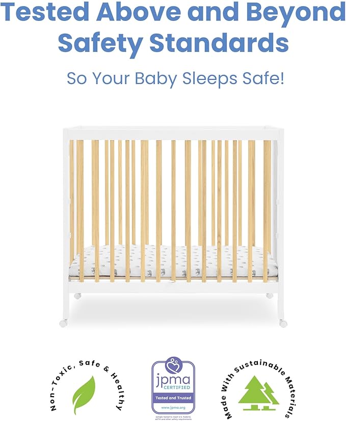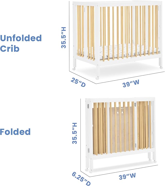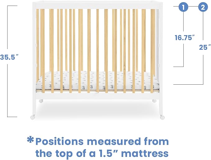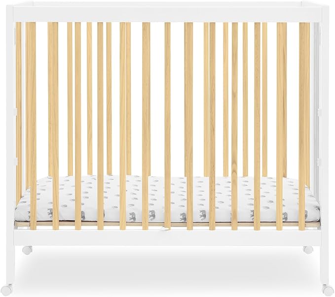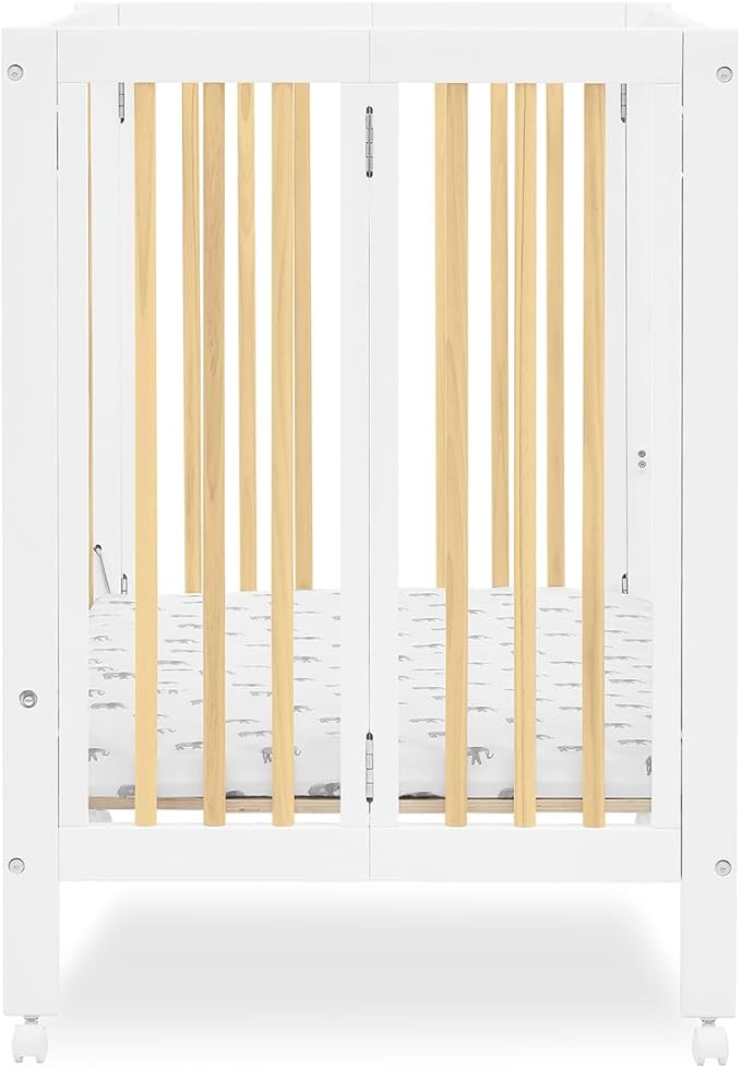 Delta Children Mia Portable Folding Mini Crib with 1.5-Inch Mattress - Greenguard Gold Certified, Bianca White/Natural