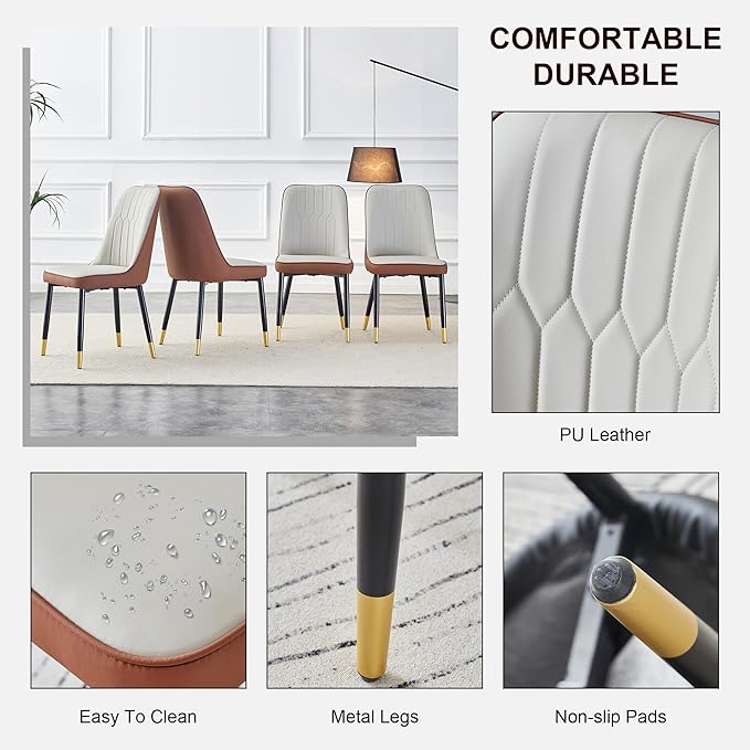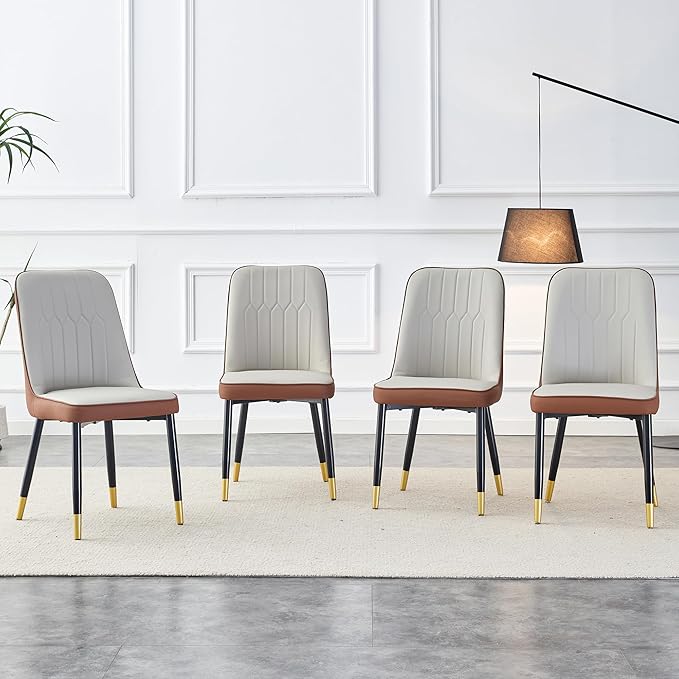 Modern Set of 4, Faux Leather Dining PU Upholstered Kitchen Chair with Black Golden Metal Legs for Home Living Room, Restaurant, 4 Piece, Brown+light Gray