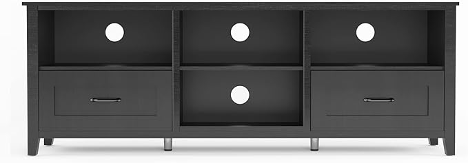 Entertainment Stand with 4 Storage Compartments, Media Center Console Table 60", Flat Screen TV Cabinet w/2 Drawers for Living Room, 70 inch, Black-3