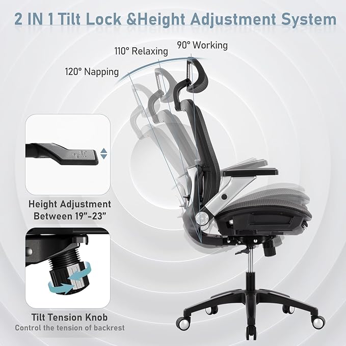 About This 👍MULTI-FUNCTIONAL OFFICE CHAIR--Features adjustable headrest, 4D flip armrest, adjustable lumbar support and height adjustment, 3-position tilt lock, all...