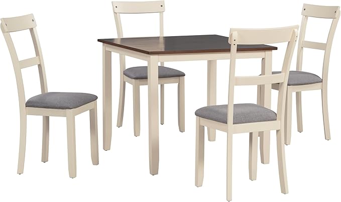 RITSU 5 Piece Set Industrial Wooden 4 Chairs, with High-density Foam Burlap Upholstered Cushions for Dining, Living Room, and Kitchen, Easy to Assemble, Dinning table for 5, Brown+cottage White
