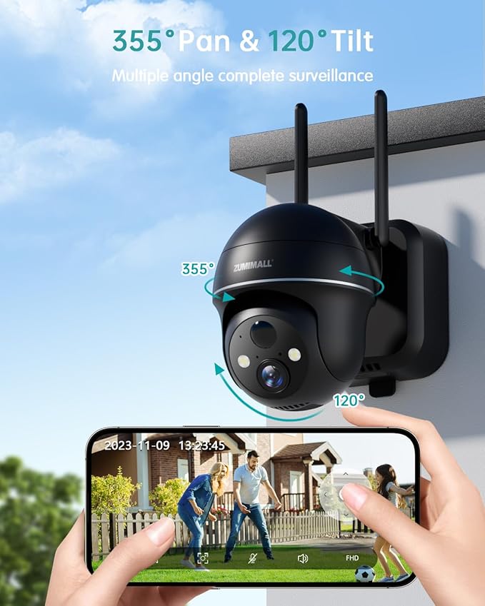 About This 360° View & 130° Wide Angle & 2K/3MP Full Color Image: The ZUMIMALL security cameras wireless outdoor offers...