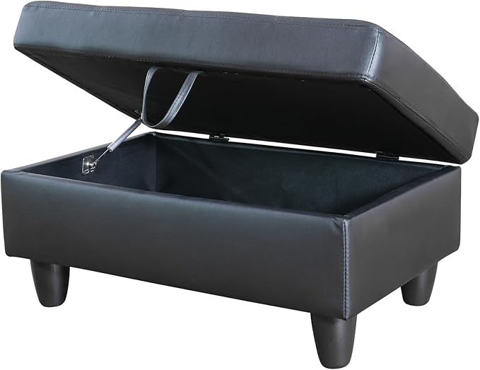 ROOMTEC Button L Shape 3 Piece Sectional Sofa Set, Upholstered Corner Couch with Storage Ottoman, Faux Leather Tufted Cushions, for Living Room, Apartment, 103inch, Black w/Right Chaise Lounge