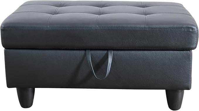 ROOMTEC Button L Shape 3 Piece Sectional Sofa Set, Upholstered Corner Couch with Storage Ottoman, Faux Leather Tufted Cushions, for Living Room, Apartment, 103inch, Black w/Left Chaise Lounge