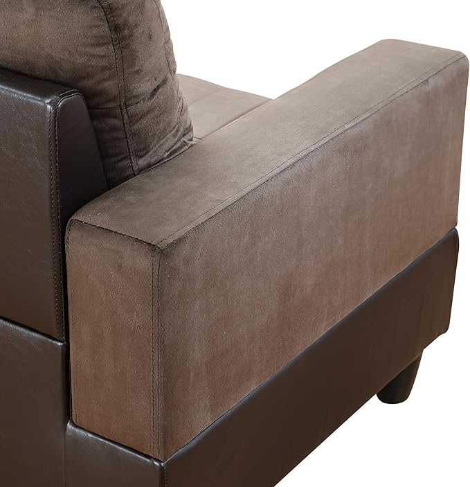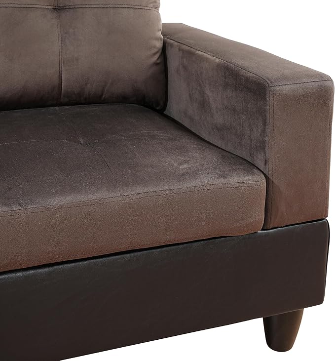 ROOMTEC 3 Piece L Shaped Sectional Sofa Set with Storage Ottoman, Left Facing Chaise Longue, Reversible Backrest w/ 2 Cup Holders, Flannel Tufted Cushions, for Living Room, Dark Brown