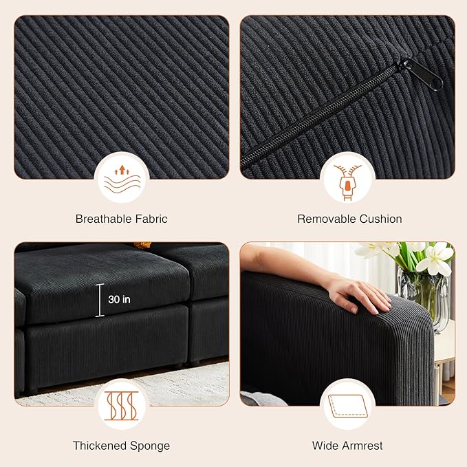 Sweetcrispy Convertible Modular Sectional Sofa, 3 Seat Sectional Couches for Living Room, Basic Shape Modern Fabric Modular Sofa Sleeper with Double Chaise for Home, Apartment, Dorm, Dark Grey