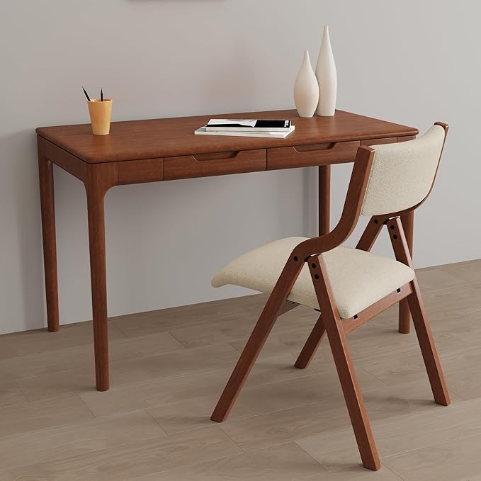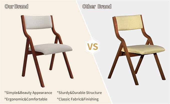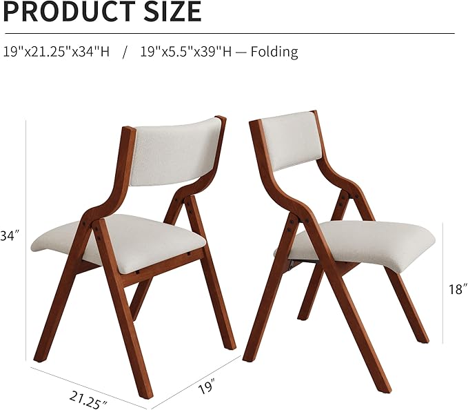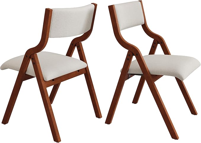 Ball & Cast Padded Folding Chairs 2 Pack,Solid Wood Frame,18" Seat Height,Space Saving,Easy to CarrySuitable for dining room, bedroom and outdoor, Milky white