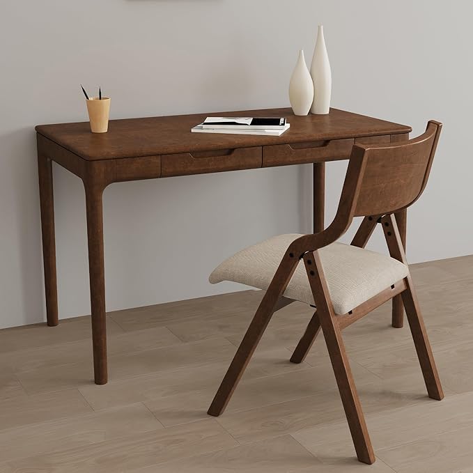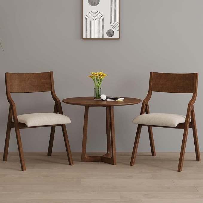 Ball & Cast Padded Folding Chairs 2 Pack,Solid Wood Frame,18" Seat Height,Space Saving,Easy to CarrySuitable for dining room, bedroom and outdoor, Walnut