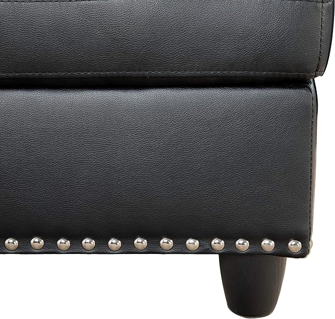 L Shaped Sofa with Ottoman Modern Nail-Head Design PU Sectional Couches with Chaise, Cup Holder for Living Room, Bedroom, Office, Leather Black