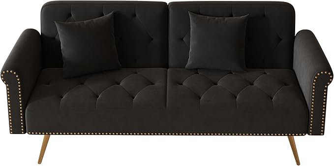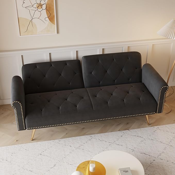 Button Tufted Upholstered Convertible Folding Sleeper Sofa Bed Futon Loveseat Couch Recliner Daybed with Adjustable and Nailhead Trim for Living Room, Bedroom, Black 69.7"
