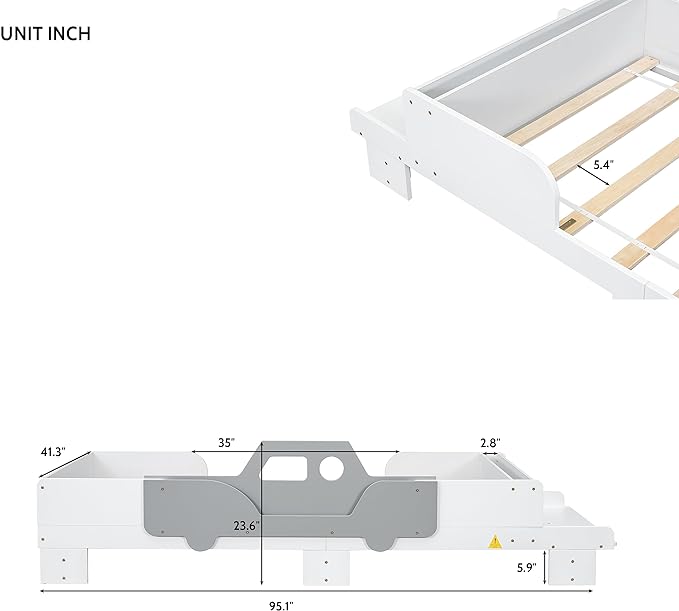 About This Wood 【Stylish and minimalistic Design】 The twin bed features car-shaped design, which not only makes the bed attractive,...