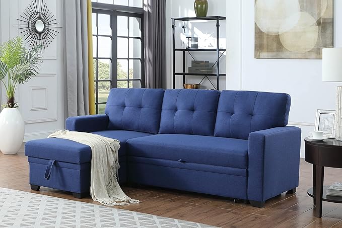 82" Sectional Sleeper Sofa with Storage Chaise,L Shaped Pull Out Couch Bed W/ 3 Removable Back Cushions and Armrest for Living Room,Apartment,Office,Blue