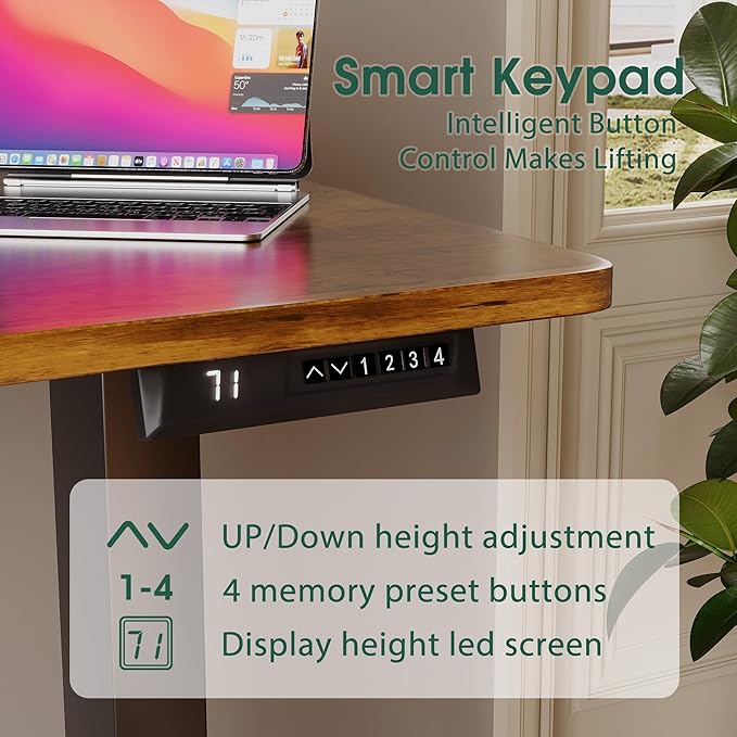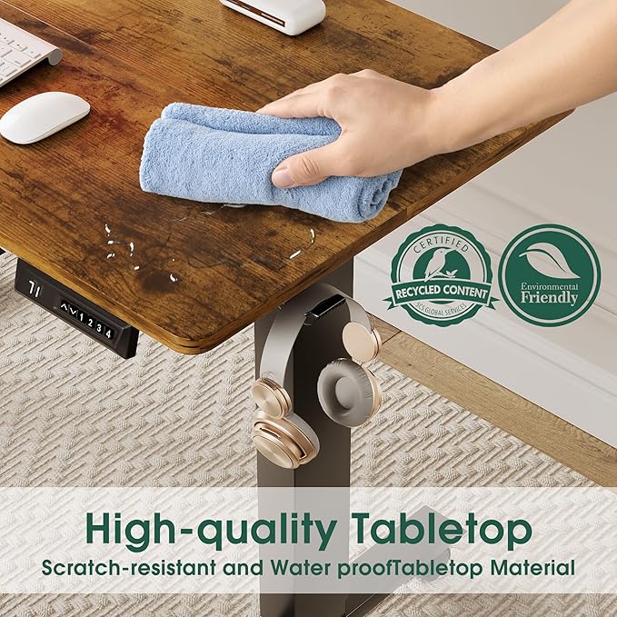 Electric Standing Desk 40 Inch, Ergonomic Height Adjustable Table with T-Shaped Metal Bracket Modern Computer Workstations for Home Office, Rustic Brown