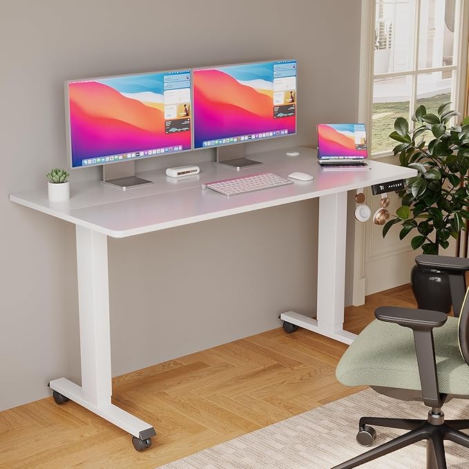 Electric Standing Desk 55 Inch, Ergonomic Height Adjustable Table with T-Shaped Metal Bracket Modern Computer Workstations for Home Office, White