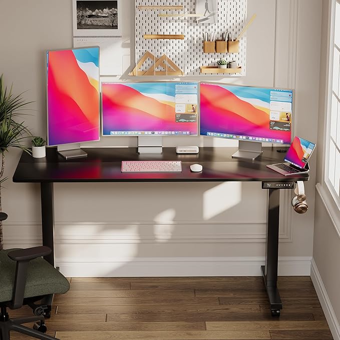 Electric Standing Desk 60 Inch, Ergonomic Height Adjustable Table with T-Shaped Metal Bracket Modern Computer Workstations for Home Office, Black