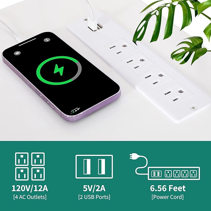 About This Convenient Charging Station: This L shaped computer desk features 4 standard plug outlets, 2 USB ports & a...
