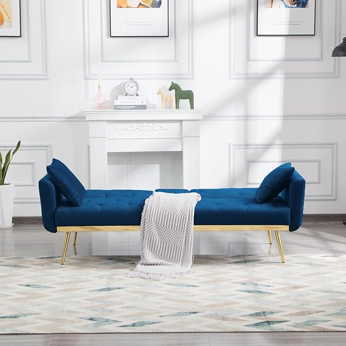 72.4" Mid-Century Modern Tufted Loveseat Sofa Living Room Furniture Sets with Cup Holder/2 Pillows/Adjusting Backrest Small Comfy Couch for Bedroom Apartment,Home Office,Navy Blue Sofá