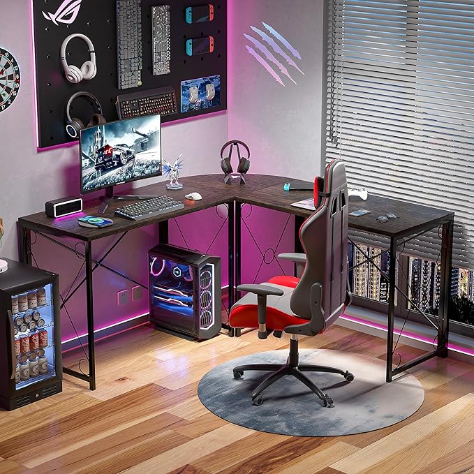 About This [Upgrade Working Equipment] - Industrial look L-shaped computer desk with "X" design attractive steel frame bring you an...