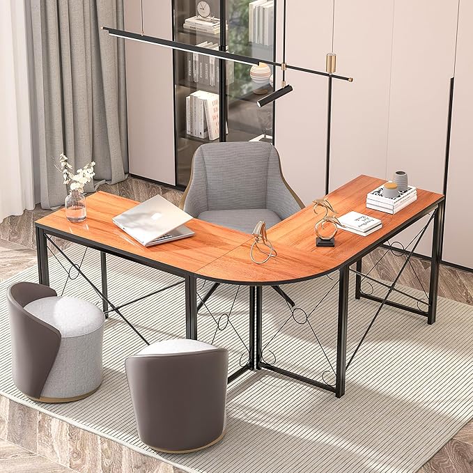 About This [Upgrade Working Equipment] - Industrial look L-shaped computer desk with "X" design attractive steel frame bring you an...
