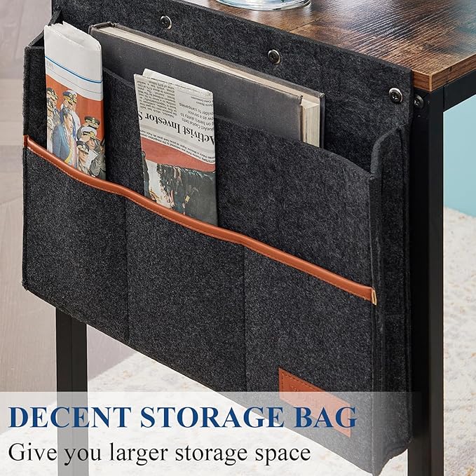VECELO L Shaped Computer Gaming Corner Desk 47 Inch Study Writing Table, Home Office Workstation with Storage Shelves & Bag, Brown